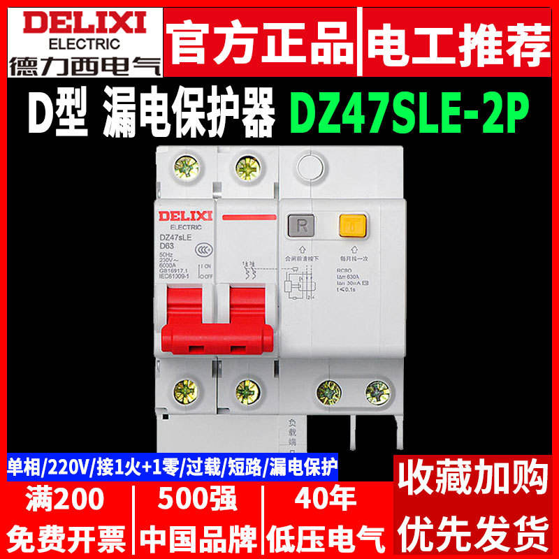 Disjoncteur différentiel miniature Delixi D-Type DZ47SLE 220V 2P, dispositif de protection contre les surtensions et les courants résiduels