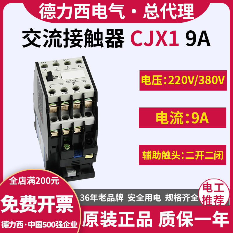 Contacteur AC monophasé/triphasé Delixi CJX1 3TB40 380V/220V/110V/36V/24V 9A/9A Produit de contacteur électrique