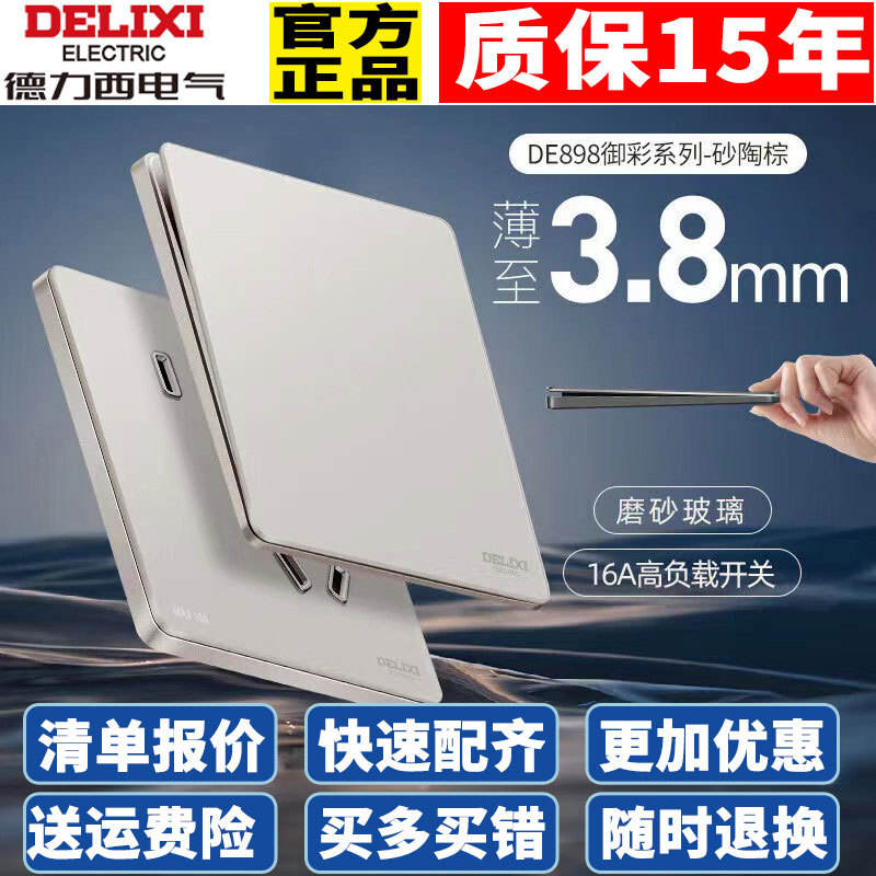 Prise murale encastrée Delixi Ultra-Thin 898, 5 prises, panneau de prise de courant domestique, couleur sable céramique, 20A, homologuée pour le Royaume-Uni et la Chine