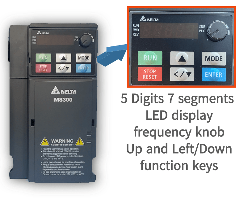 Display:Removable 5-digit LED keypad for remote operation
