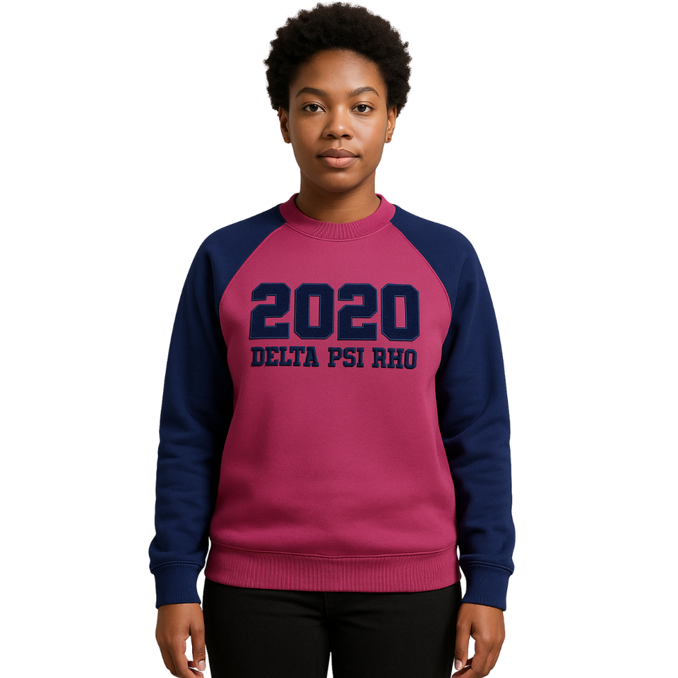 Delta Psi Rho Sorority Raglan Sleeve Crewneck Sweatshirt Pink Cotton Poly Founding Year 2020 Jumper Greek Life Casual Apparel