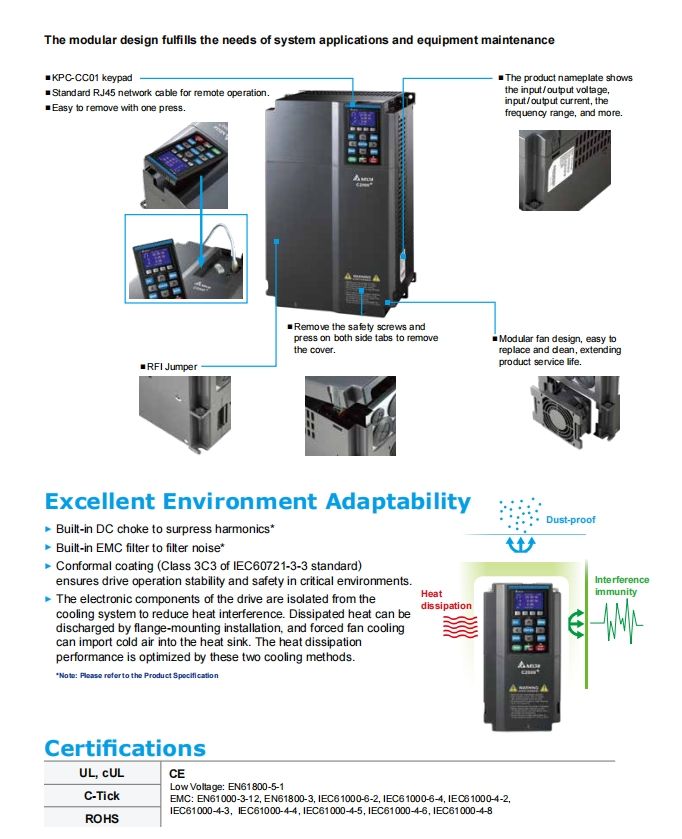 Delta VFD-C2000 + série variateur de fréquence AC VFD037C43A-21 3.7kW 380V largement utilisé en stock
