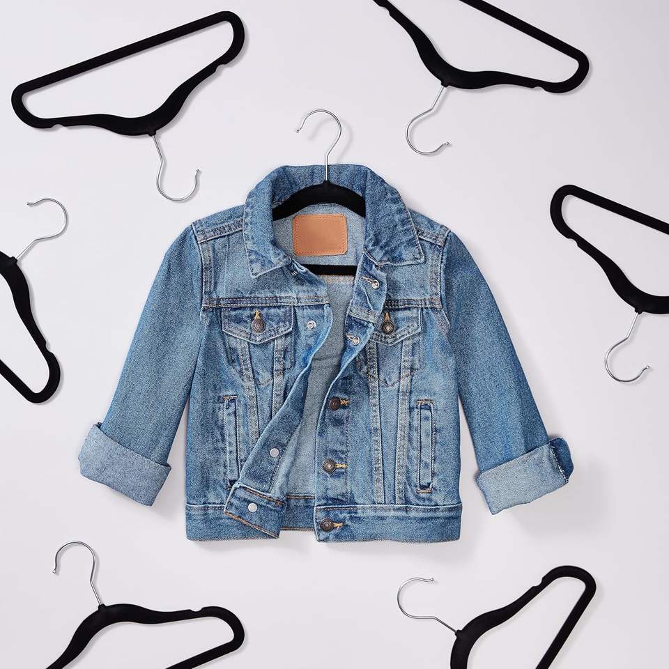 Cintre de luxe personnalisé, gain de place, antidérapant, en velours floqué noir, écologique, à un seul niveau, pour manteaux et costumes