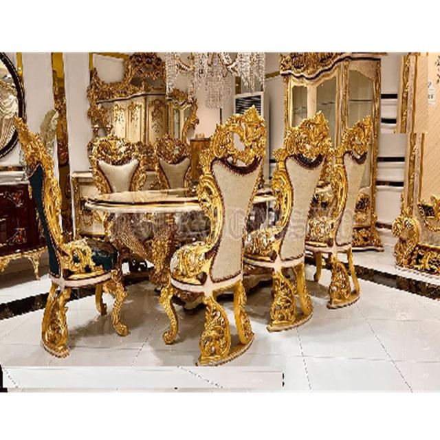 Chaises de table à manger de luxe or brillant polonais ensemble de table à manger 8 places fabriquées à la main salle à manger de luxe brillante polie