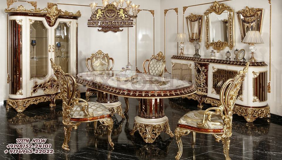 Deluxe Design Bright Gold Polish Dining Table Chairs Set