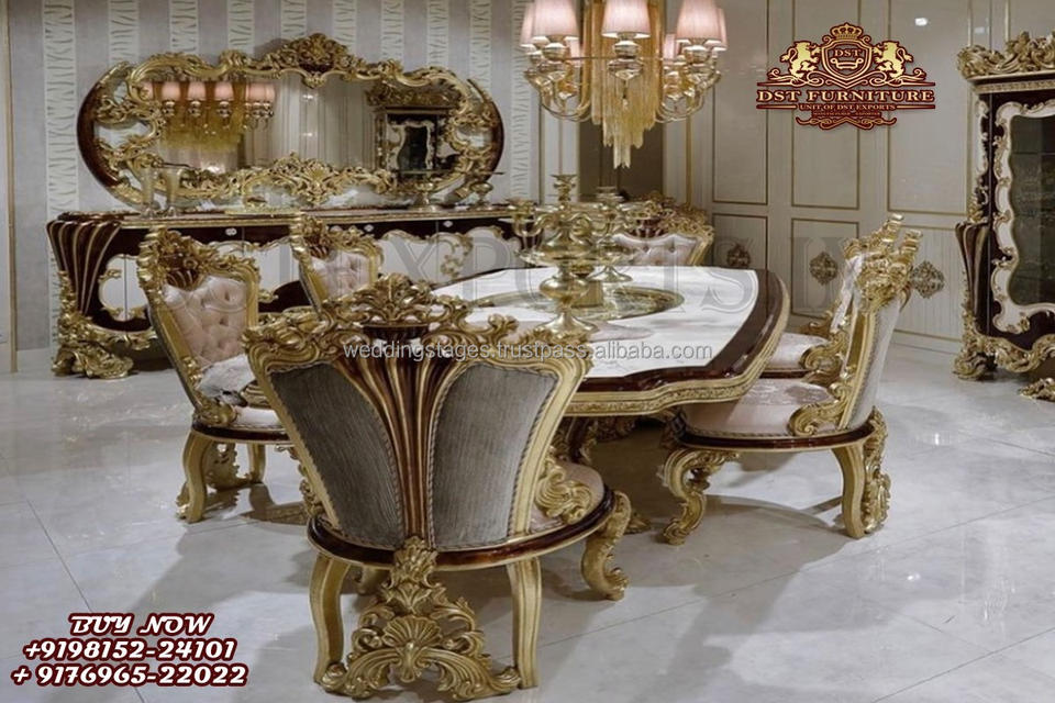 Deluxe Design Bright Gold Polish Dining Table Chairs SetProduct name
