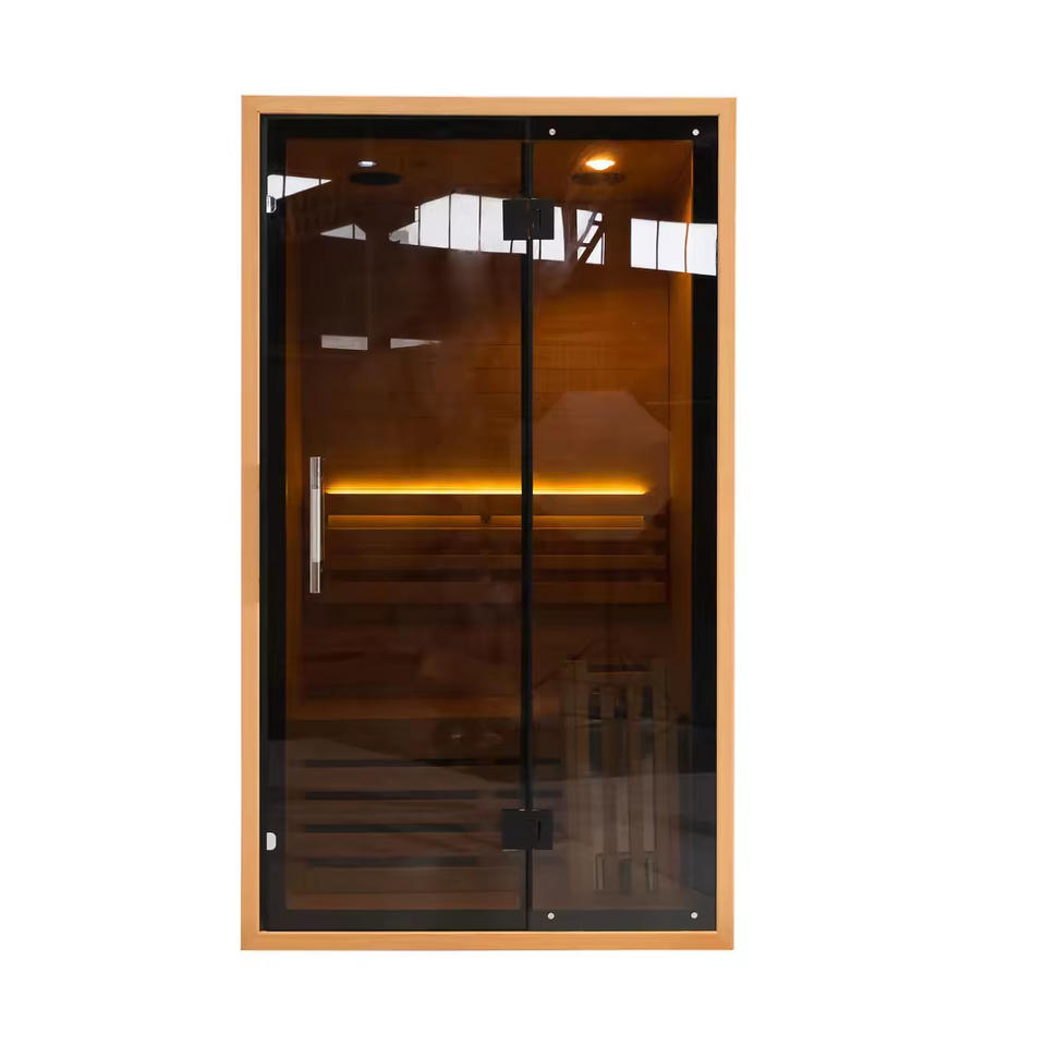 Sauna intérieur à vapeur en bois teinté pour 2 personnes en pruche/séquoia canadien de luxe