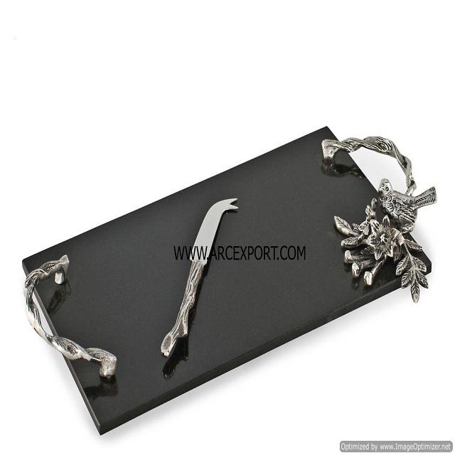 Plateau en marbre noir de qualité de luxe avec cadre en métal décoration de table plateau de service alimentaire et plateau vaisselle hôtel et restaurant
