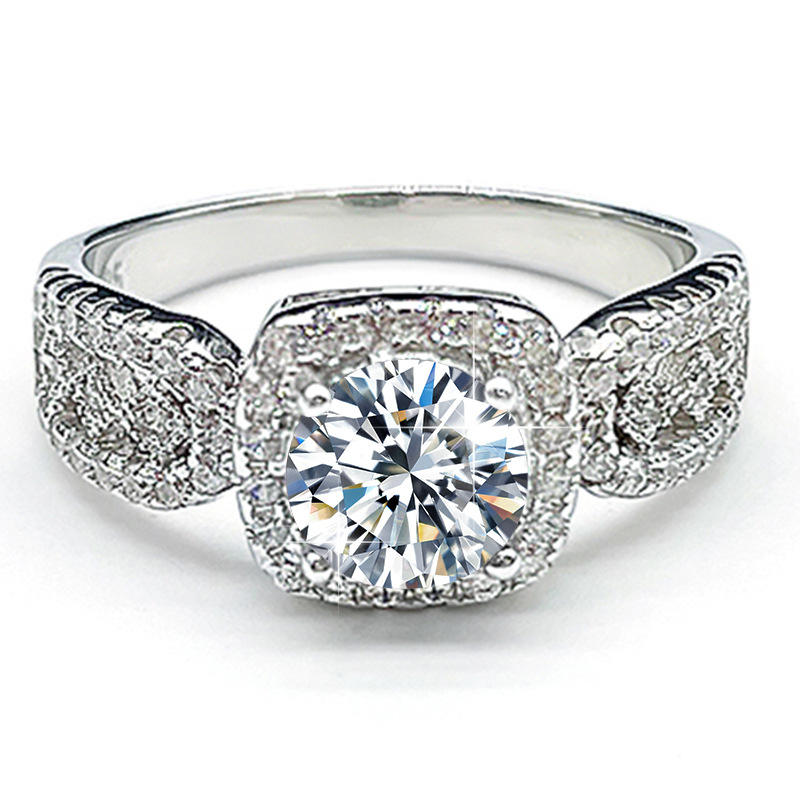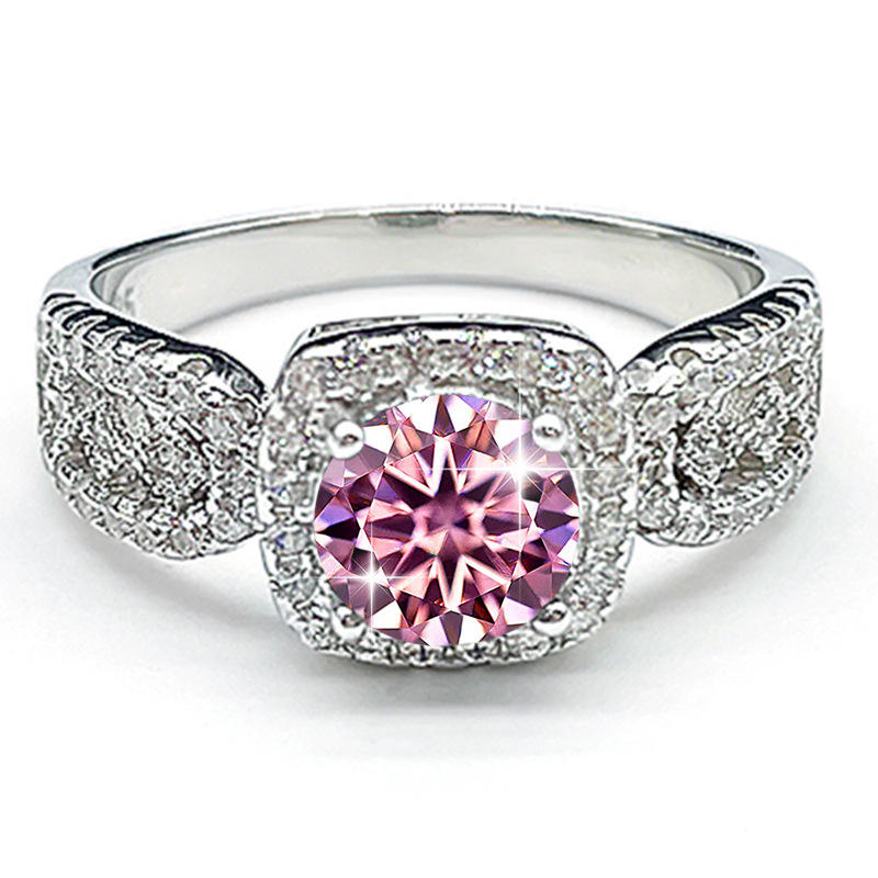 Bague de fiançailles et de mariage en argent sterling S925 avec moissanite rose de 1 carat, sertie de dentelle de luxe, style princesse carrée