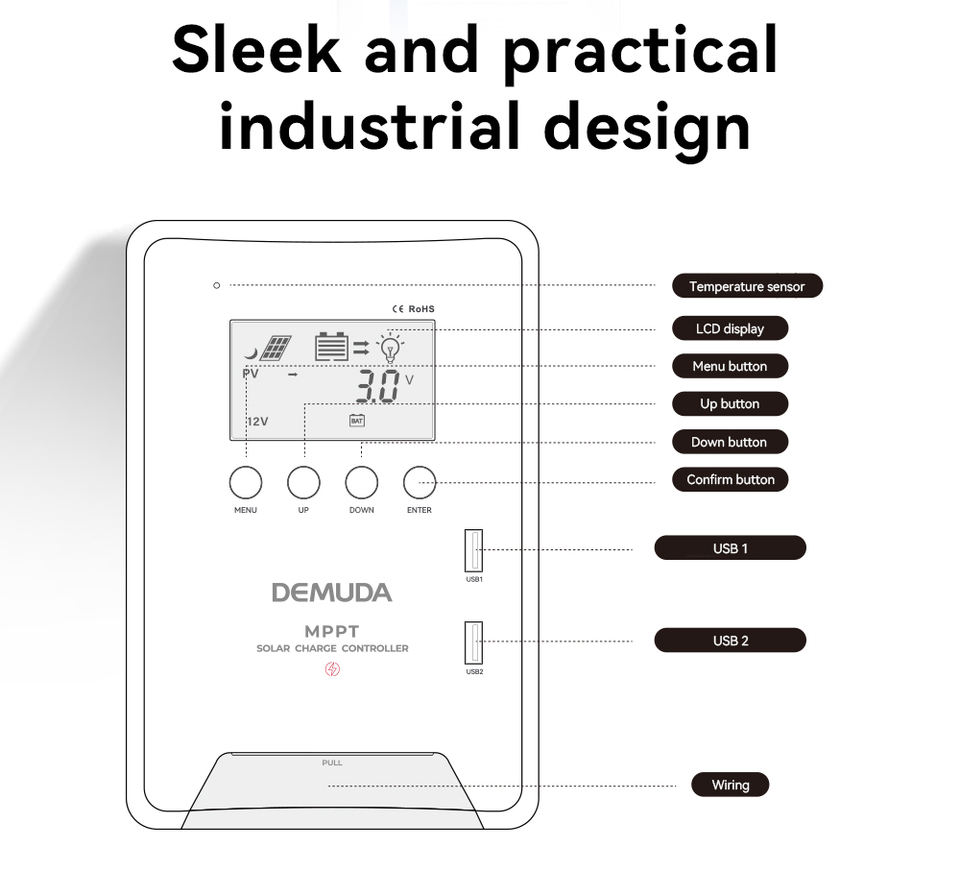 Contrôleur de Charge, Station de travail solaire, Contrôleur d'éclairage, Contrôleur de tension, Système de contrôleur solaireApplication
