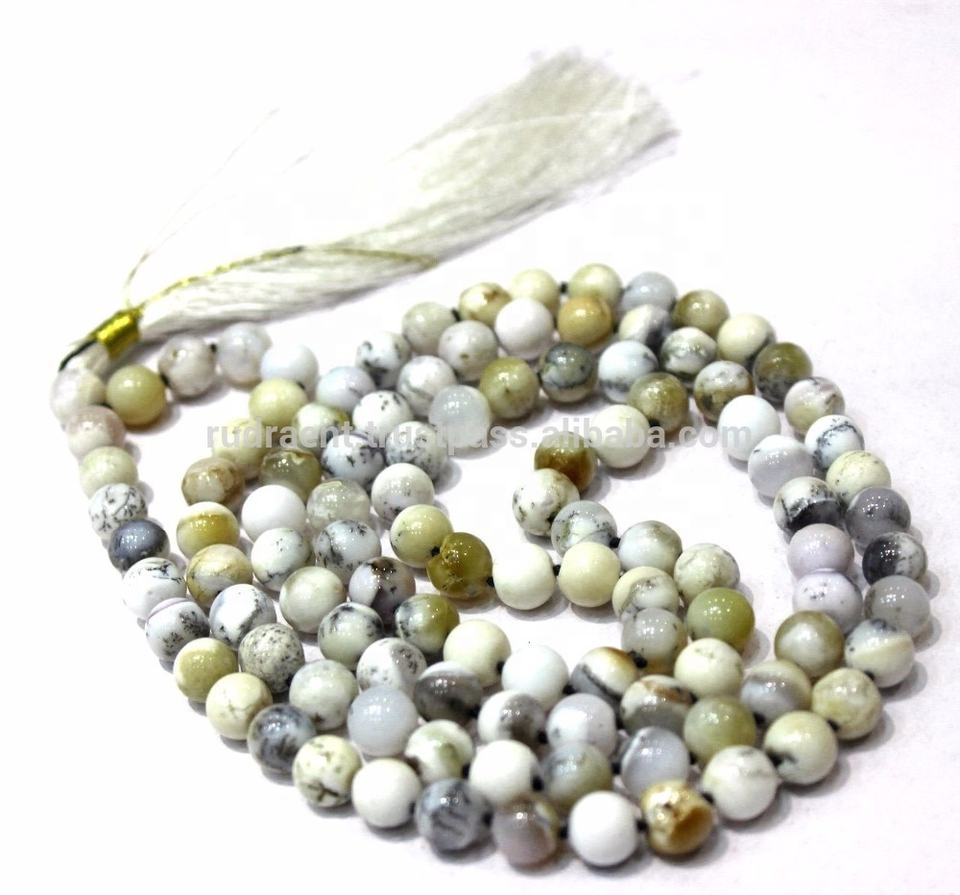 Collier de perles d'artiste indien fait à la main avec agate dendritique 8mm perles Mala gland noué pour les fêtes de cadeaux inspirées du bouddhisme
