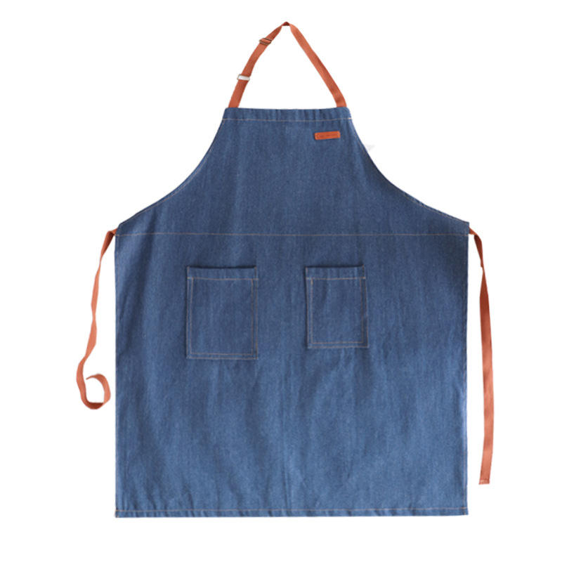 Tablier en jean pour femmes et hommes, vêtements de travail de cuisine, durable, couleur unie, anti-salissure, tablier à usage quotidien