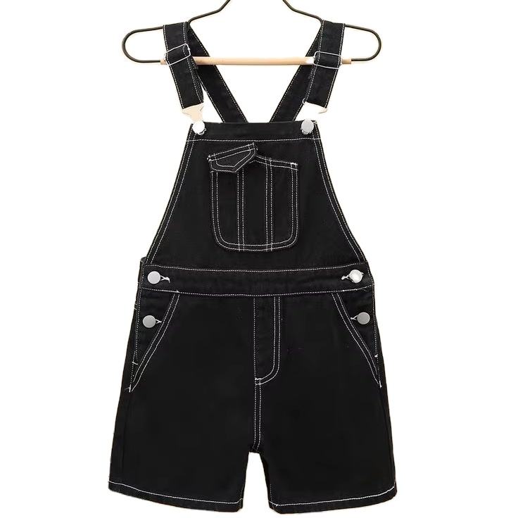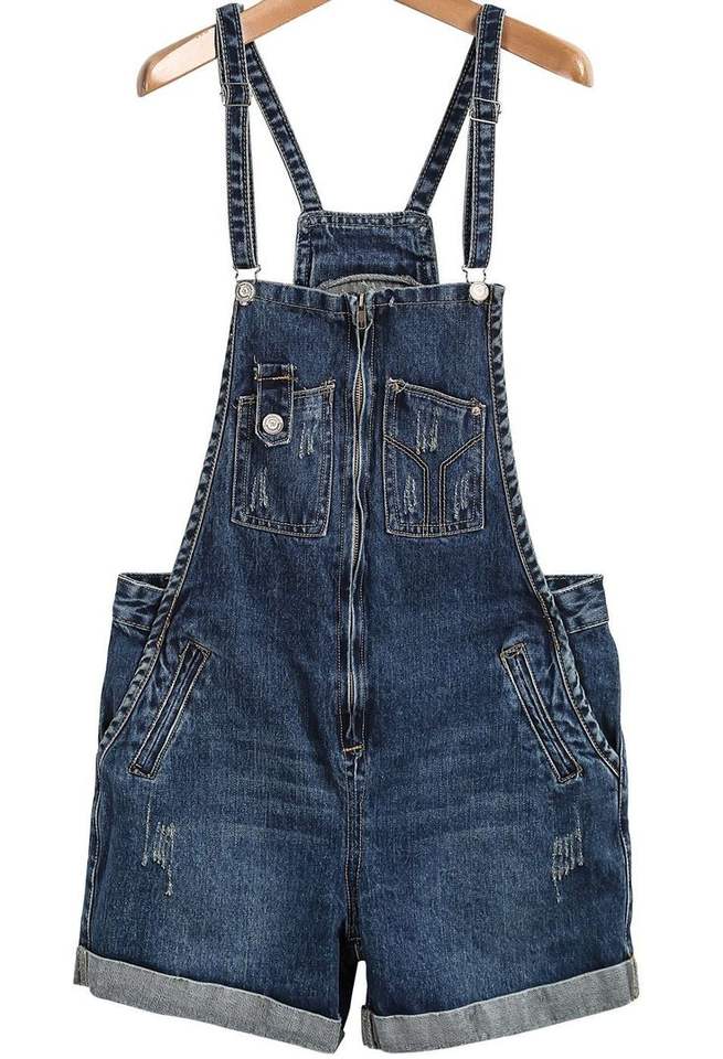 Denim de haute qualité salopette courte pour femmes lavage léger en détresse Vintage Style sans effort bavoir ensemble bouton imprimé à la mode