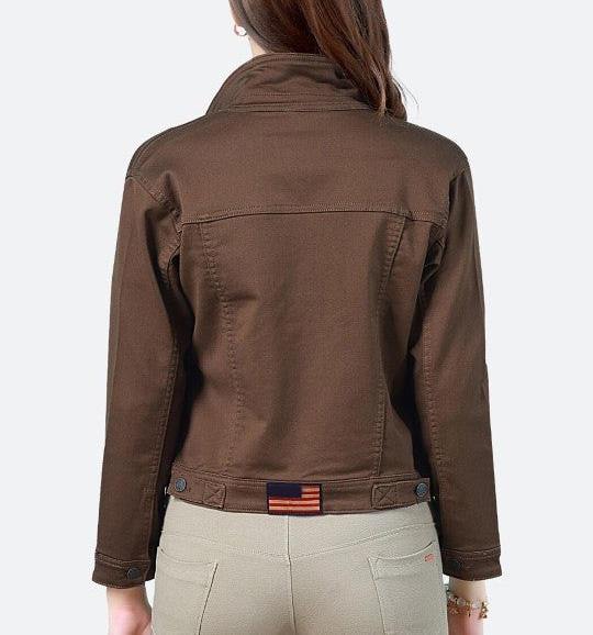 Veste en jean personnalisée avec logo brodé, col rond en toile, effet délavé, rembourrée, matelassée pour femme