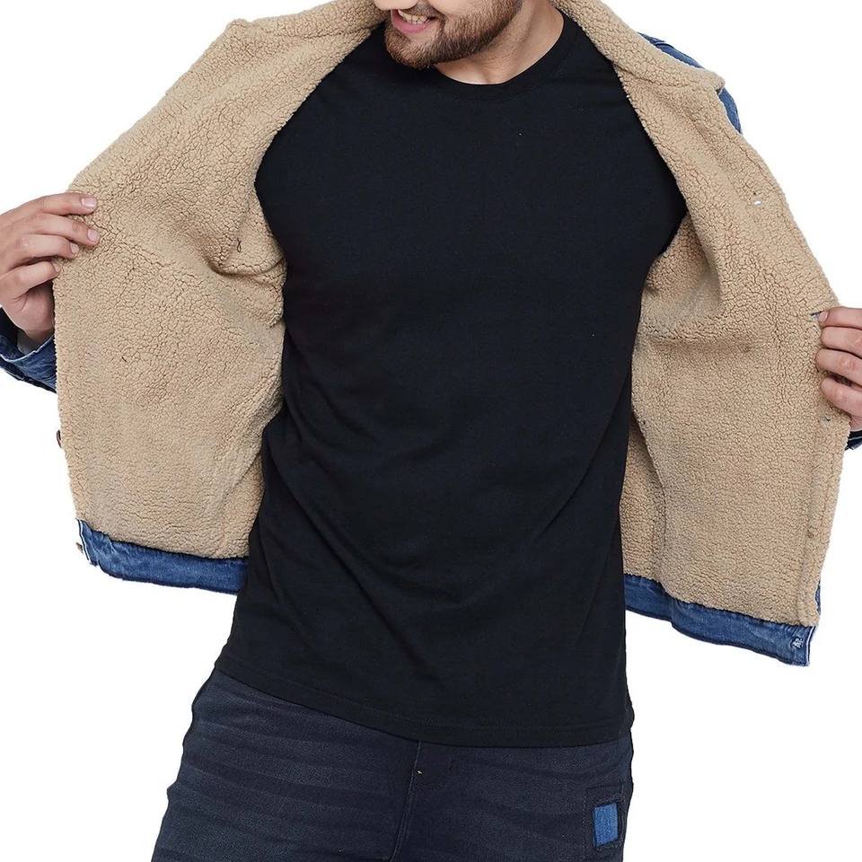 Vestes en jean avec doublure en fourrure Doublure intérieure en polaire sherpa respirante Vestes en jean d'hiver Conception personnalisée Veste de pluie en jean pour garçons