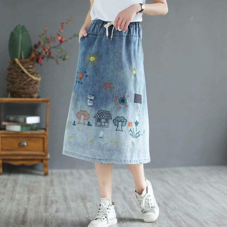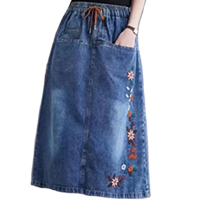 Mots clés:Jupe longue fendue imprimée en denim