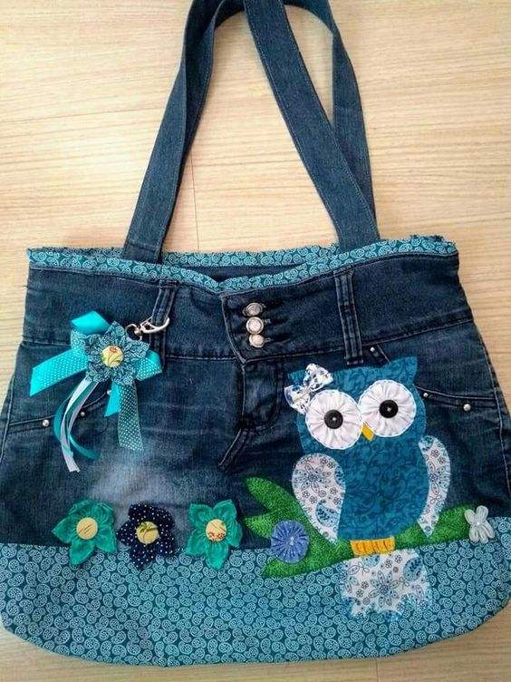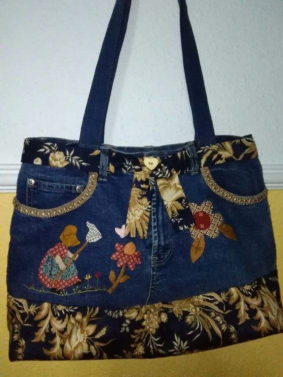Denim bags Premium Quality Vintage Casual Fashion Accessory Denim Tote Bags Printed Fabric Whole Sale