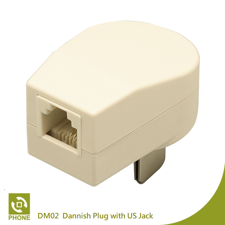 Adaptateur de prise danoise vers téléphone RJ11, accessoire électronique, acier blanc et matériau ABS