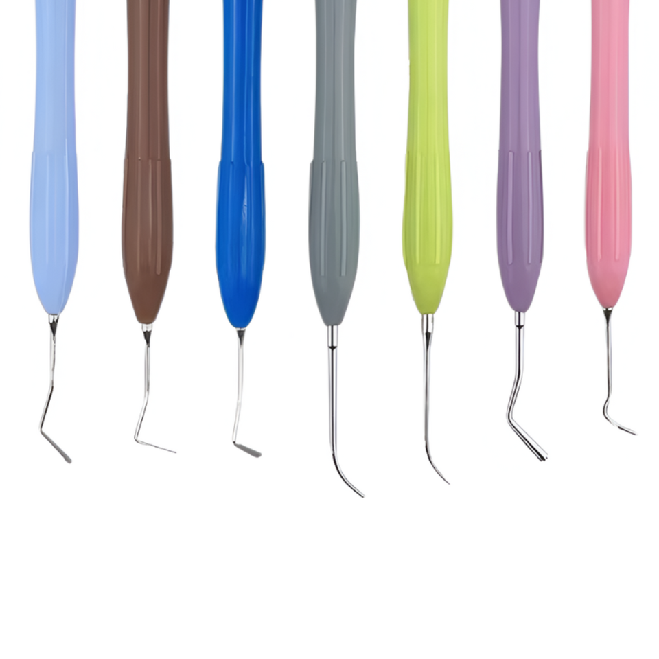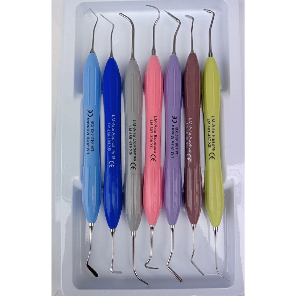 Instruments de restauration dentaire en composite, style LM, manche ergonomique en silicone, kit de 7 pièces, manuel, codage couleur, certifié CE