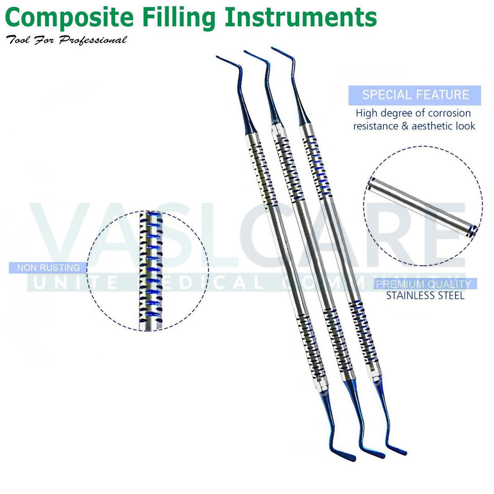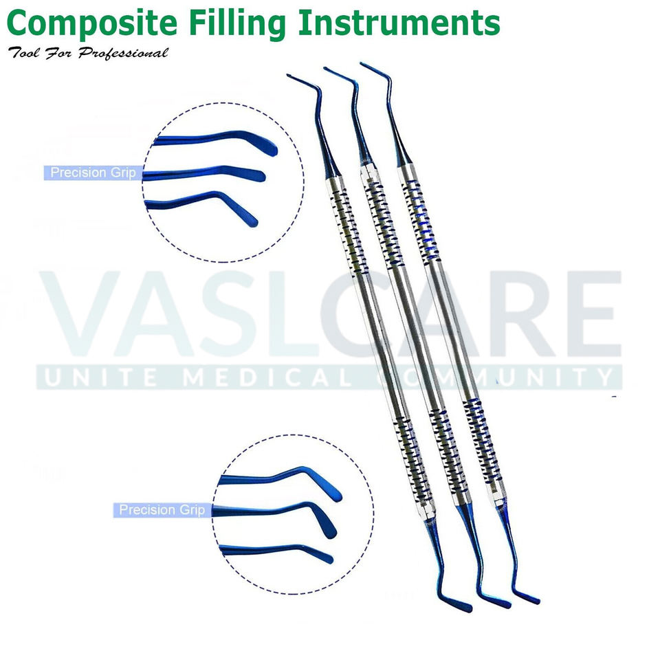 Kit d'outils dentaires plats en plastique pour composite, lot de 3 (2mm/2.5mm/3mm), instruments manuels certifiés CE Classe I par Vaslcare