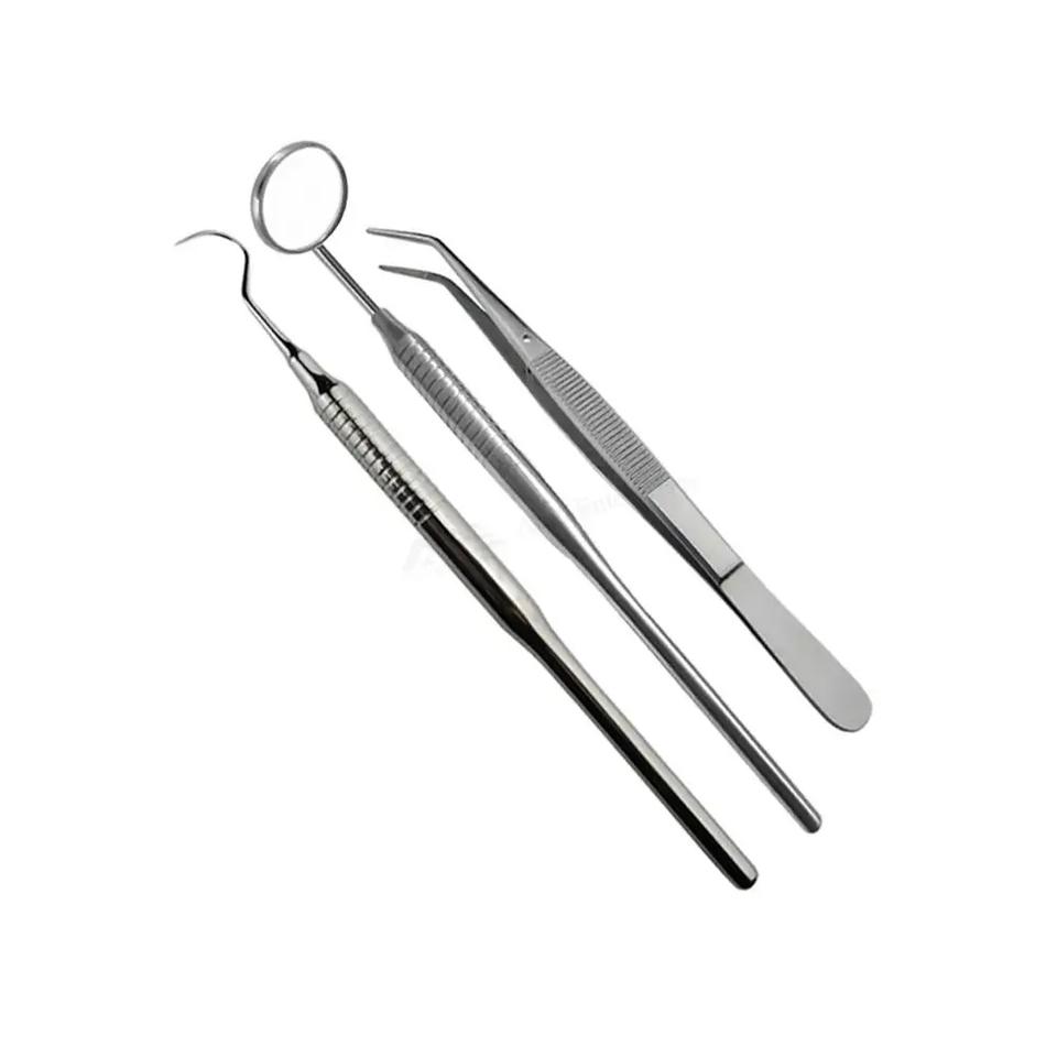 Ensemble d'instruments dentaires 3 kits d'examen dentaire en acier inoxydable et poignée de miroir pour l'examen dentaire des étudiants