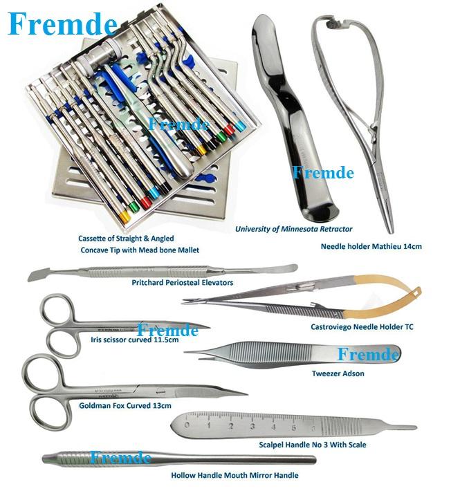 Kit d'élévateurs dentaires Ostotomes concaves Minnesota, Castroviego, Mathieu, Pritchard certifié CE