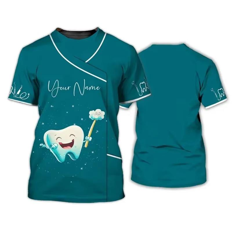 Dental Scrub T-Shirt Custom Unisex 100% Cotton Knitted Oversized Animal Print Anti-shrink for Men Women Clinical Medical