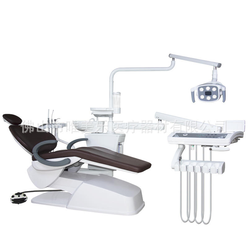 Fauteuil dentaire confortable avec table et machine de traitement dentaire, doté d'un coussin en microfibre pour un soin optimal