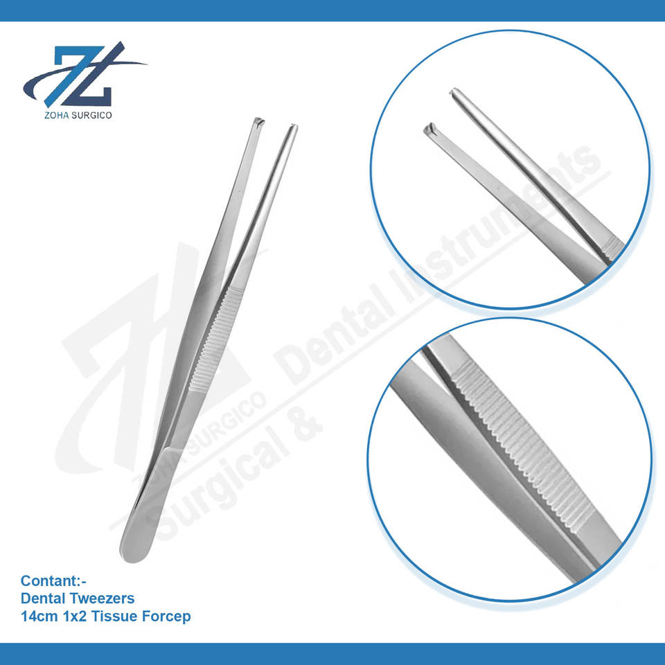 Dental Tweezers 14cm 1x2 Tissue Forceps Stainless steel Dental Tweezers Autoclavable Dental Tweezers Cotton holding Pakistan
