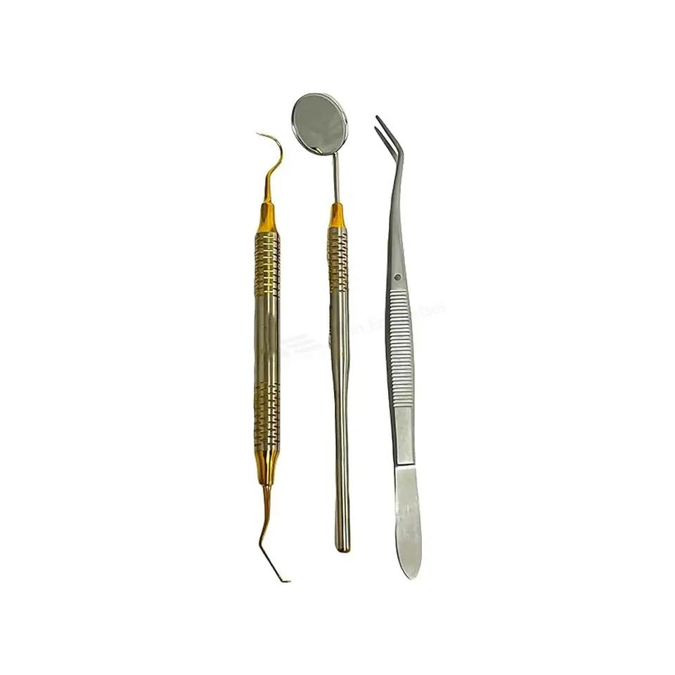 Outils de dentiste bouche miroir et détartreur de faucille pince à épiler en acier inoxydable Kit de nettoyage d'examen d'hygiène dentaire 3 pièces