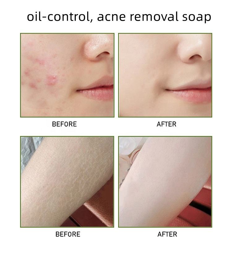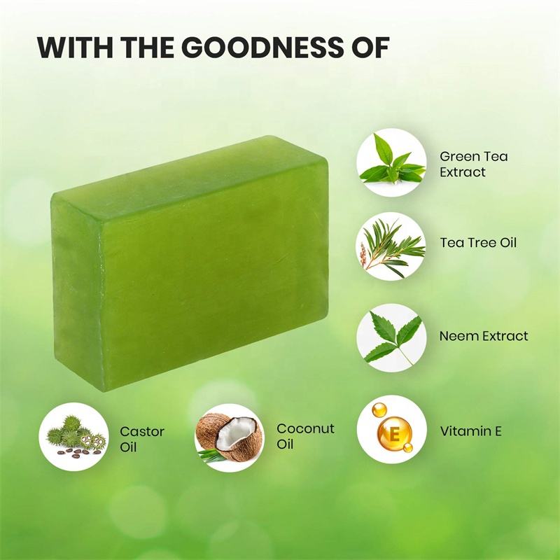 Désodorisant Apaisant Thé Vert Arbre Neem Savon Naturel Traitement Acné Acariens Barre de Gommage pour le Visage et le Corps