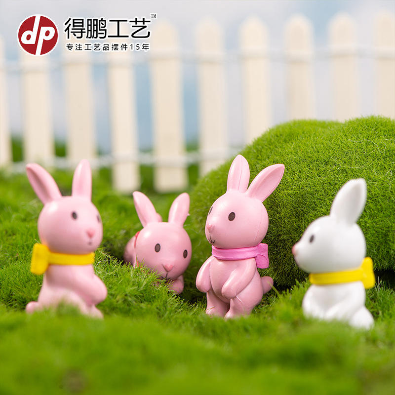 Figurines de lapin de dessin animé Depeng Crafts, ensemble rose et blanc, mini décoration de jardin, moulage par injection, produits finis