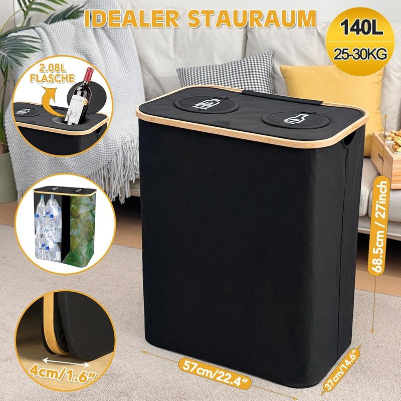 Conteneur de collecte de bouteilles de dépôt 2 compartiments, stockage vide et en verre avec 2 sacs de transport