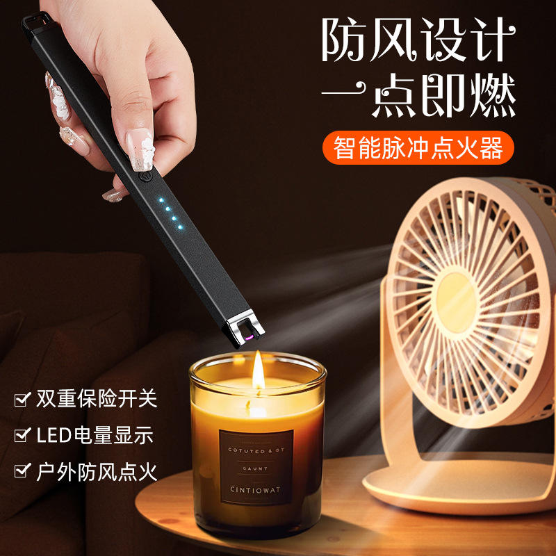 Dericsson Custom LOGO Briquet de cuisine électrique rechargeable de type C Bougeoir en métal portable avec fonction coupe-vent