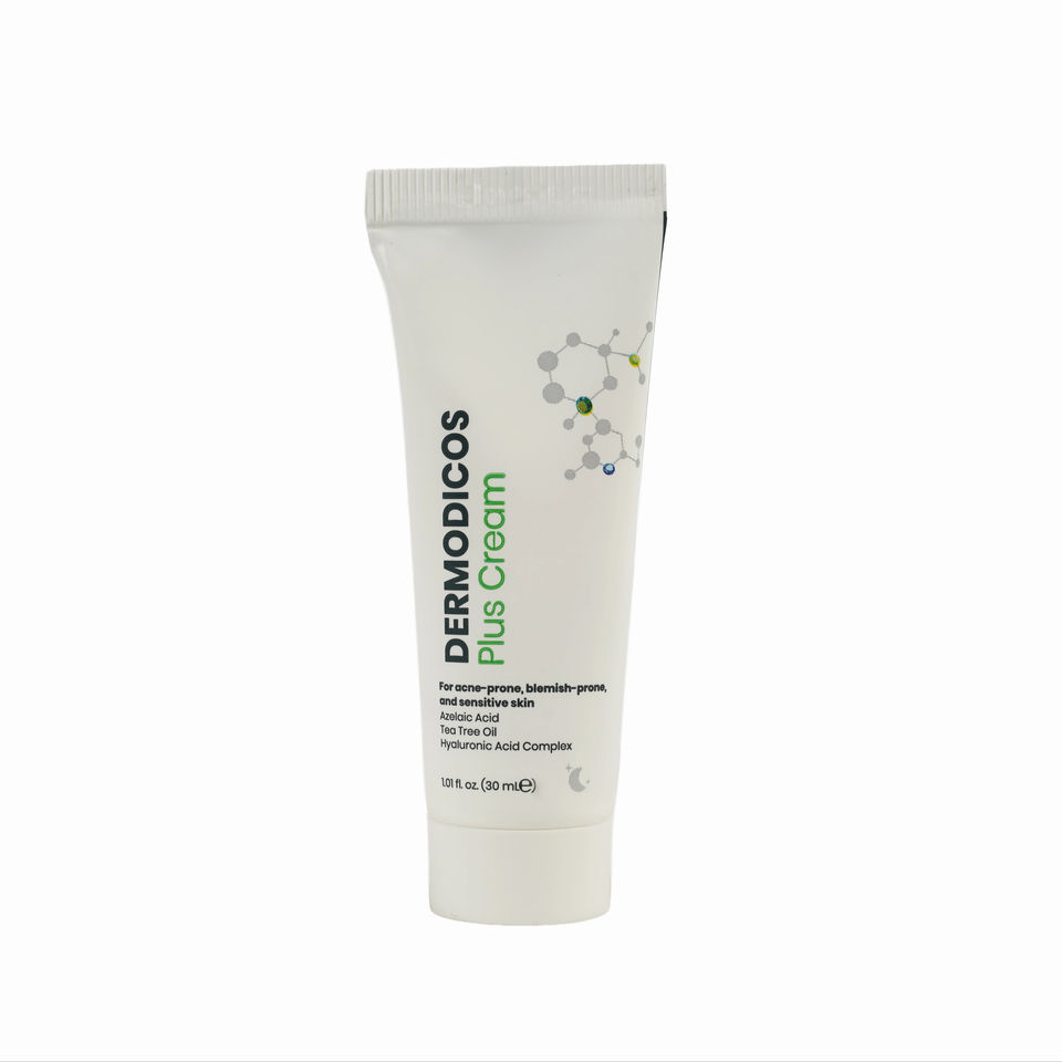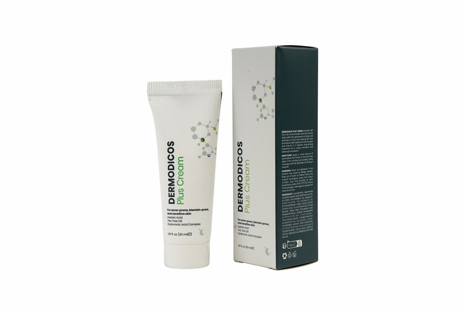 Crème Dermodicos Plus 30ml Crème réparatrice équilibrante pour le visage Huile d'arbre à thé Acide hyaluronique pour une peau lisse Utilisation nocturne Tous types de peau