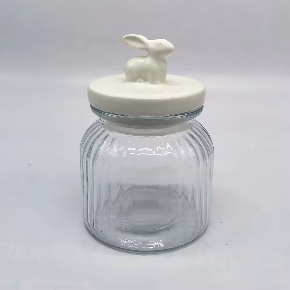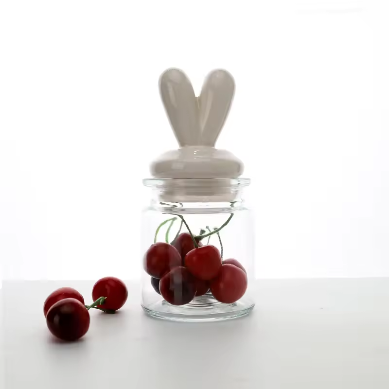 Couvercle d'oreille de lapin en céramique couvercle d'oreille de lapin en céramique couvercle de stockage scellé pot Mason