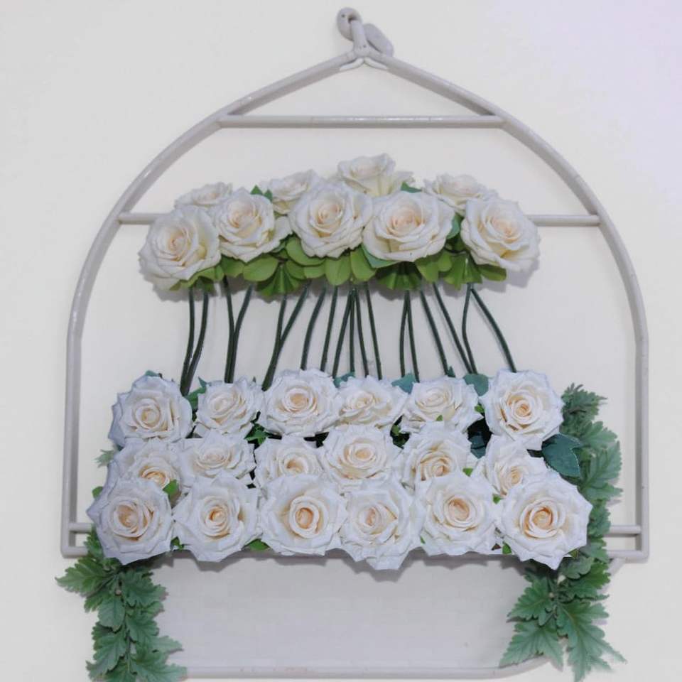 Artificial Flower Silk 3 Heads Rose Ivory White Artificial Rose