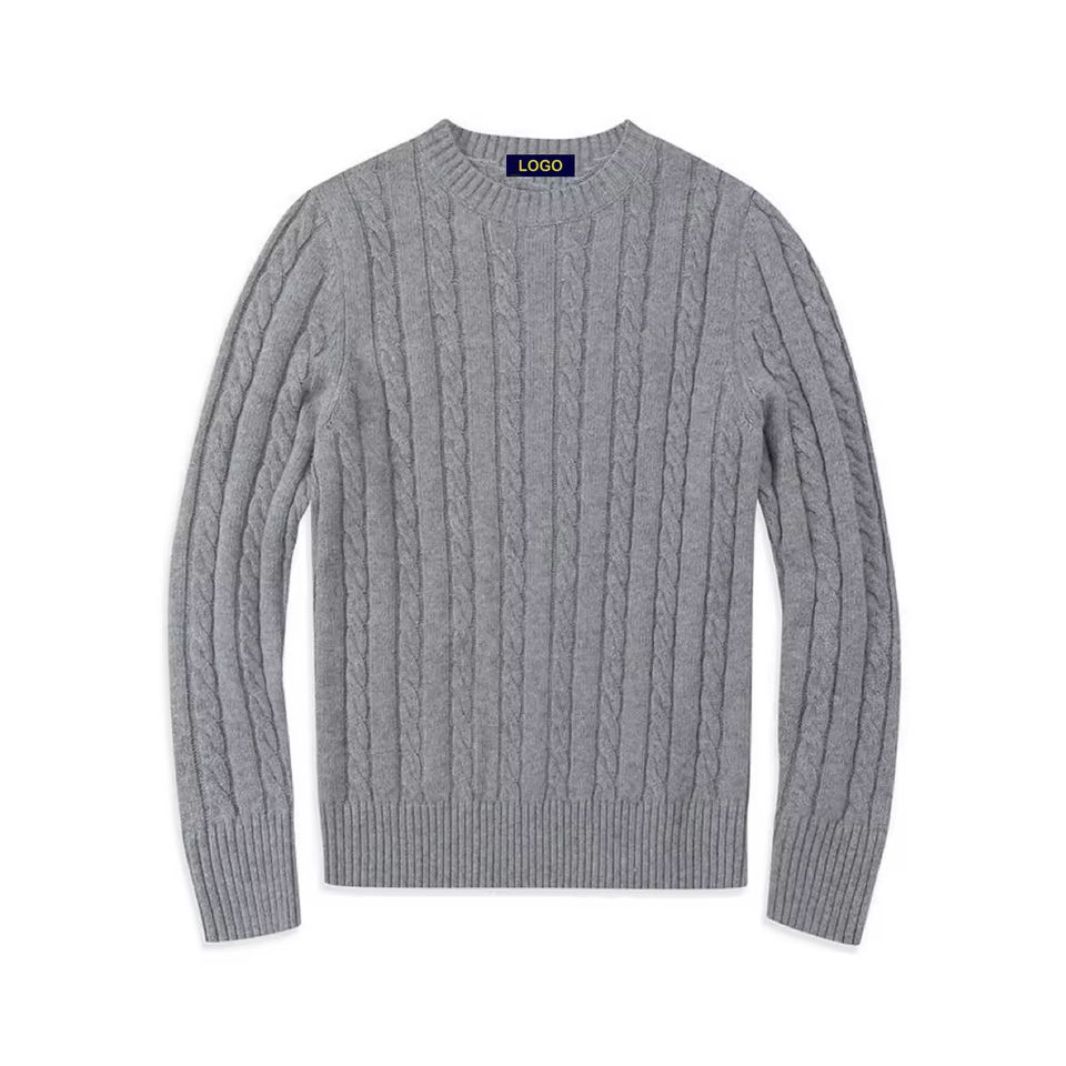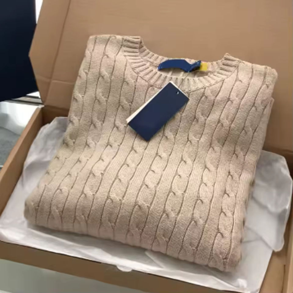 Pull en coton pour homme avec logo brodé, logo de cheval Ra, tricoté en câble avec col rond pour homme