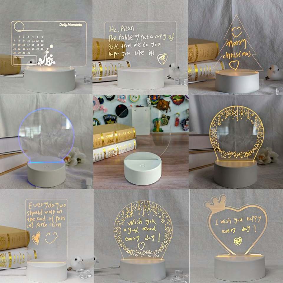 Tableau d'écriture LED RGB créatif en acrylique avec base effaçable pour messages DIY, idée cadeau originale