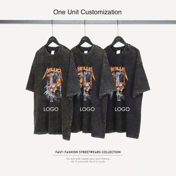 Design Custom Graphic Tees Printed Men's Silk Screen Printing Vintage Distressed Acid Wash T-shirt Men Oversized Tshirts