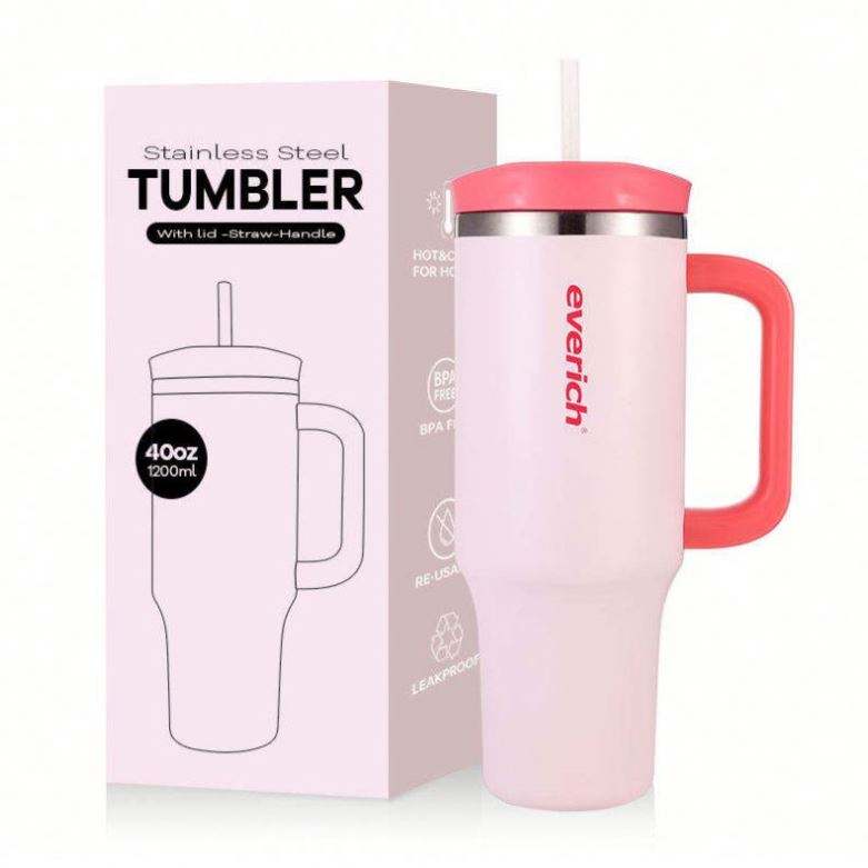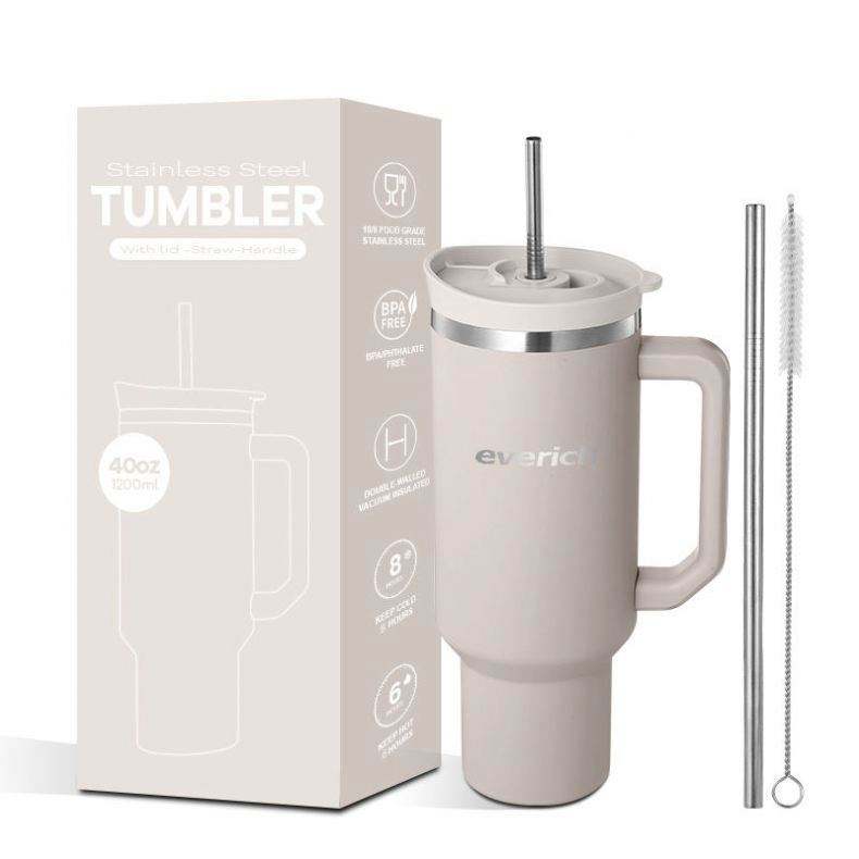 Mug de voyage isotherme en acier inoxydable à double paroi de 40 oz avec logo personnalisé, couvercle anti-poussière et poignée, idéal pour l'aventure