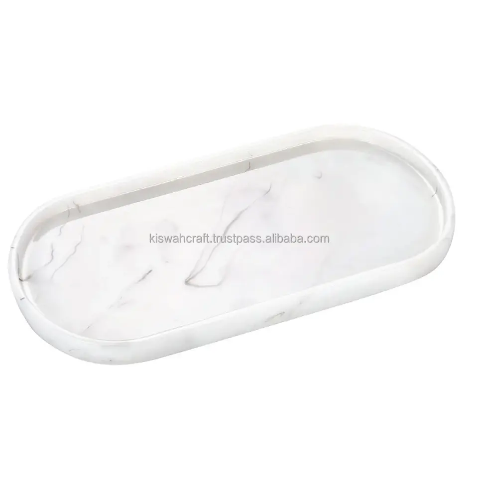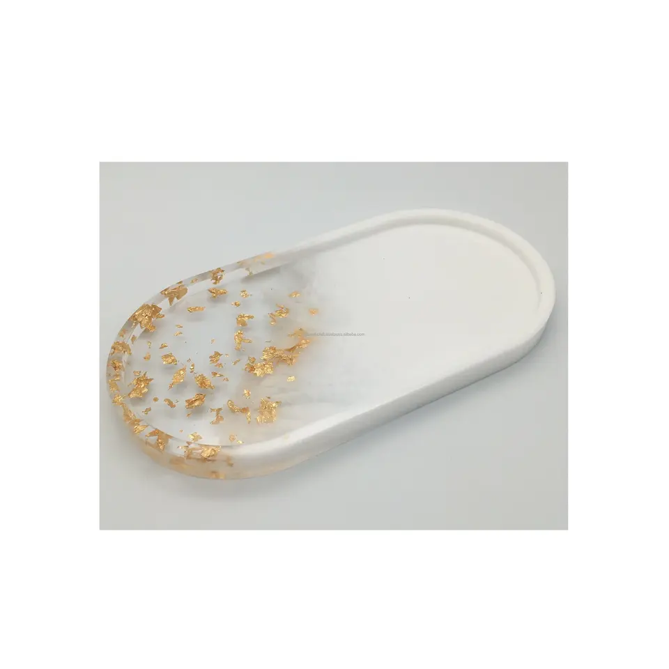 Plateau Design en Résine Époxy Dernier Design en Résine et Paillettes de Couleur Blanche et Dorée avec Design en Marbre à Prix Bon Marché