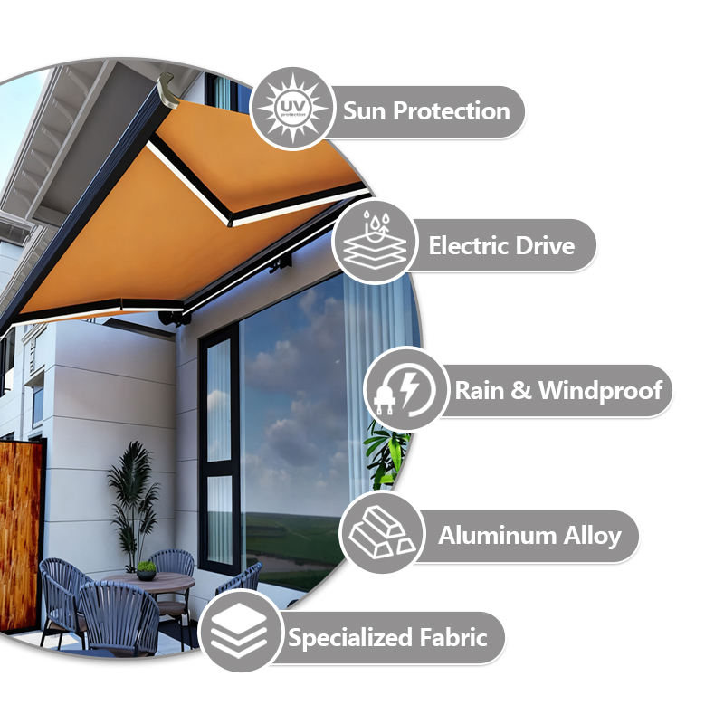 Auvent rétractable motorisé automatique imperméable pour terrasse avec fenêtre électrique à cassette intégrale, design avant-gardiste