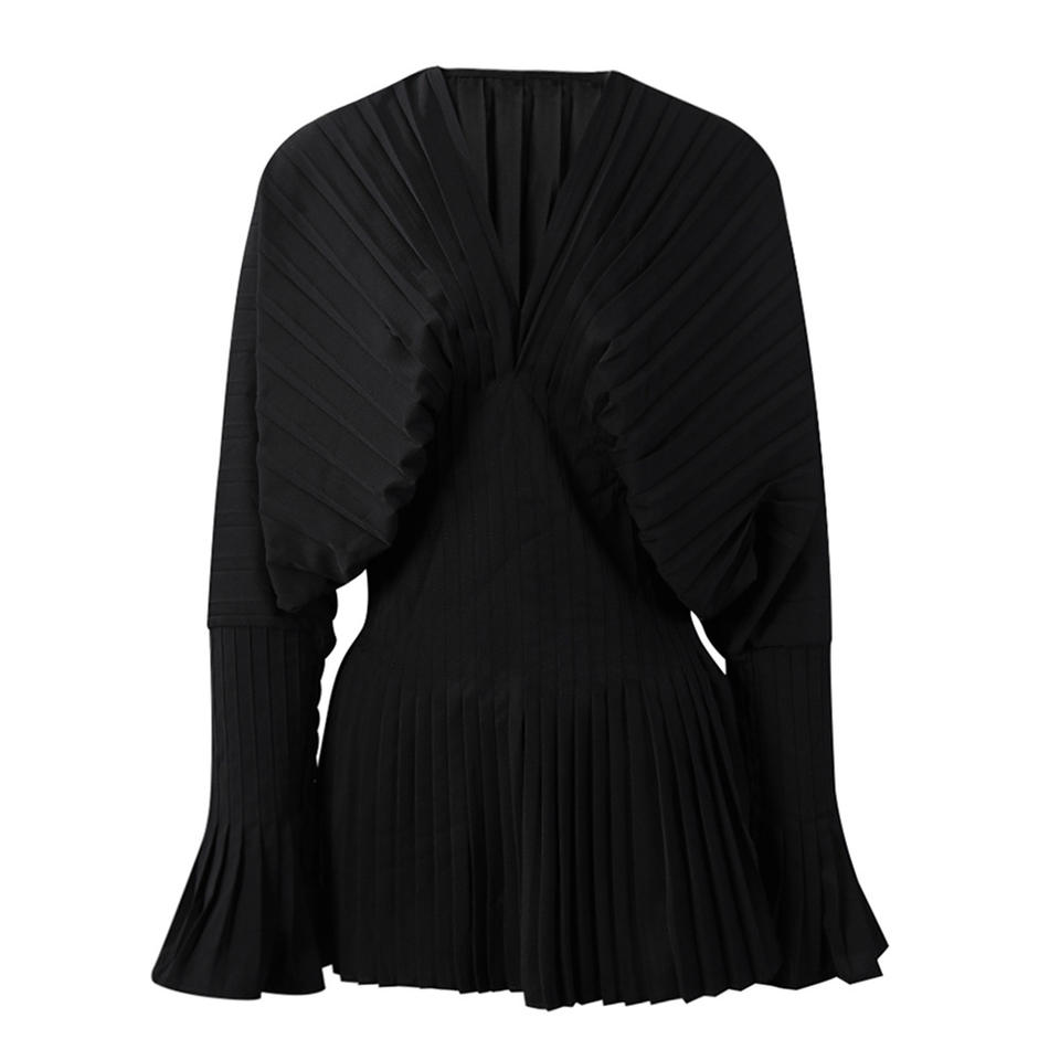 Nouveau modèle de chemisier pour femme à col en V, style corset, en tissu épais, à manches plissées évasées, taille haute, Design Gas Top Fall, Tendance