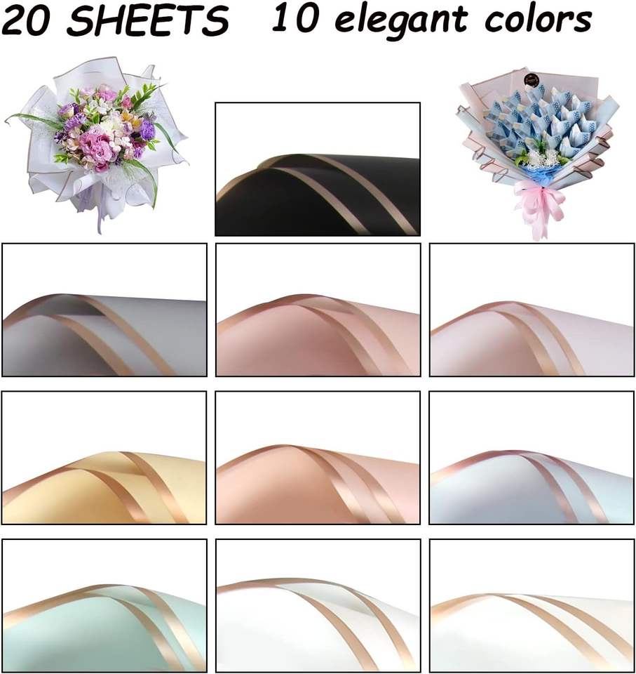 Papier d'emballage pour fleurs personnalisé, design bord doré, en plastique imperméable, pour bouquets, vente en gros