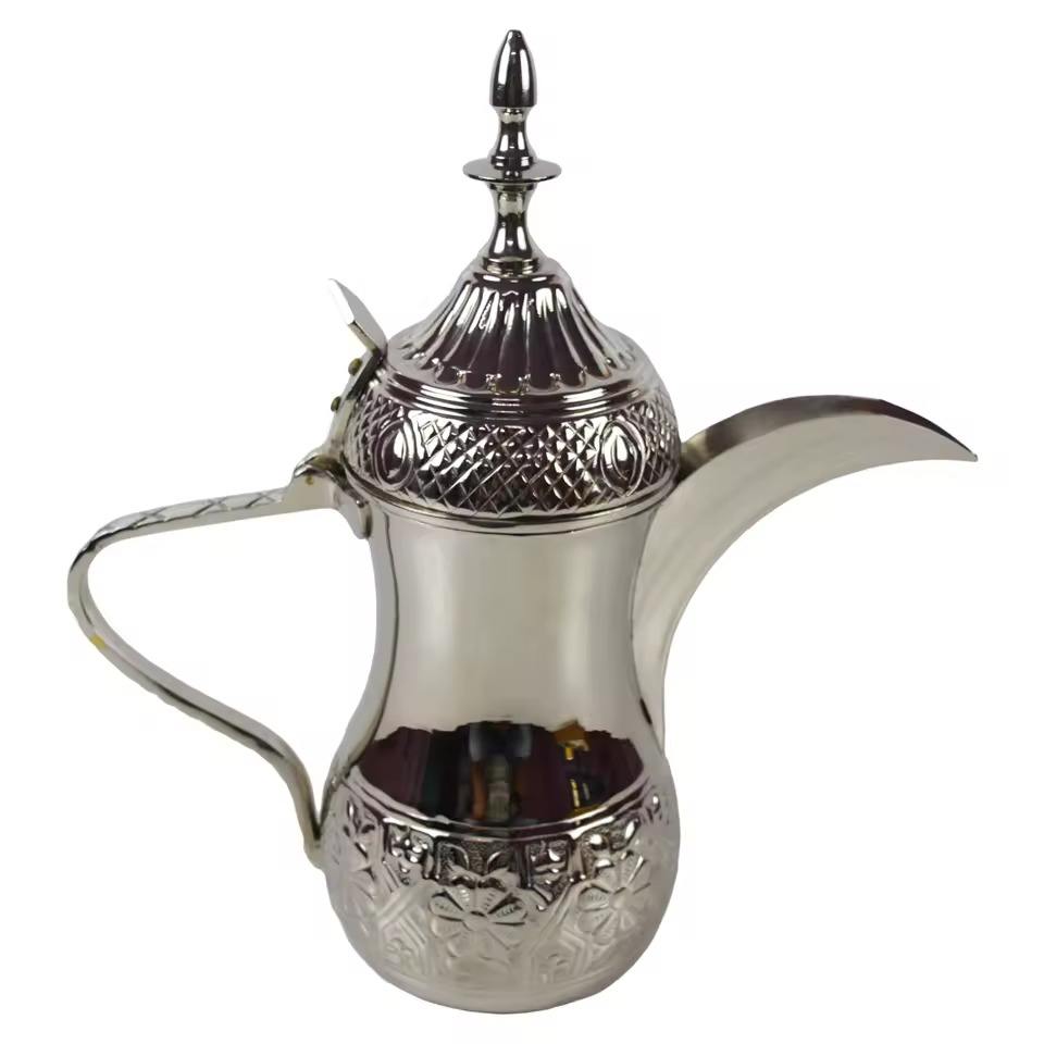Pichet en argent gravé de style arabe avec des détails sculptés traditionnels pour la décoration de la maison, les cadeaux, l'usage religieux et festif