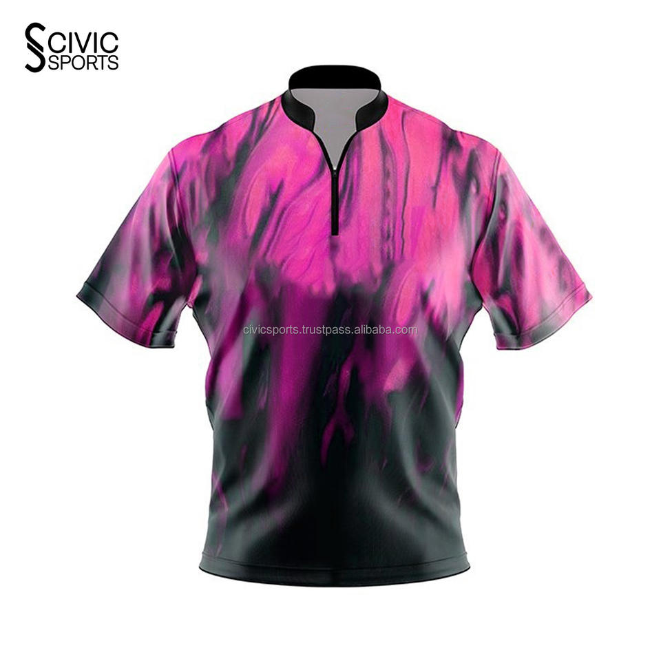 Polo à manches courtes avec demi-fermeture éclair Design Pit Crew Shirts Bowling Shirt Dart Jersey