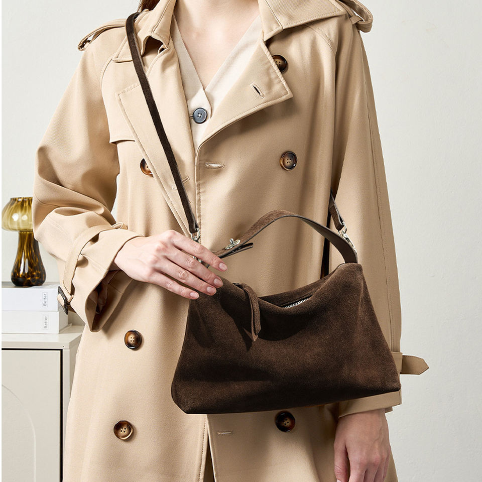 Sac à main pour femme en cuir de vachette véritable suédé, motif géométrique, fermeture éclair, sac hobo, sac à bandoulière, design haut de gamme pour l'hiver