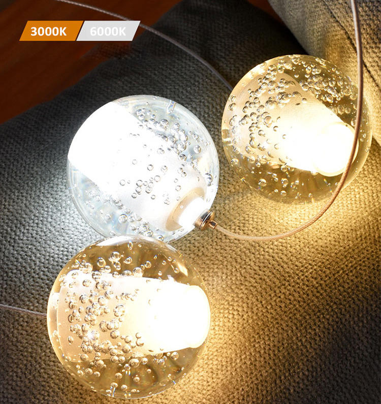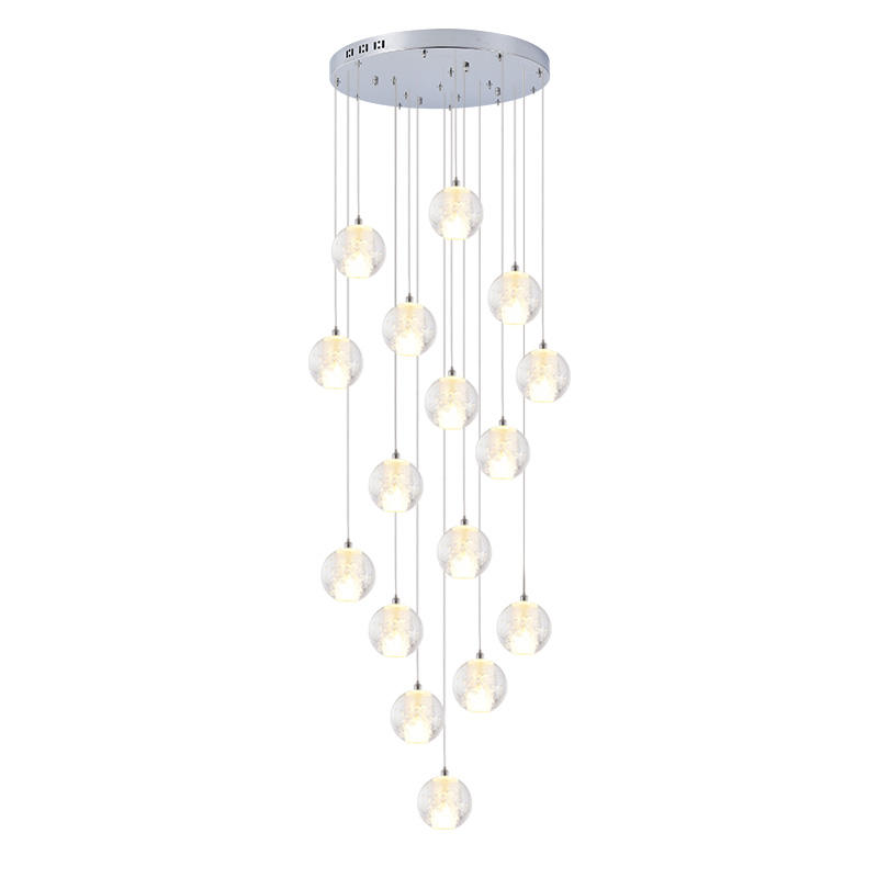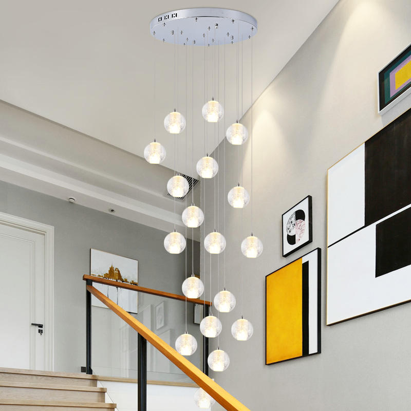 Lustre long et haut, design original, boule de cristal à bulles, suspension pour escalier, style hélicoïdal pour villa, maison
