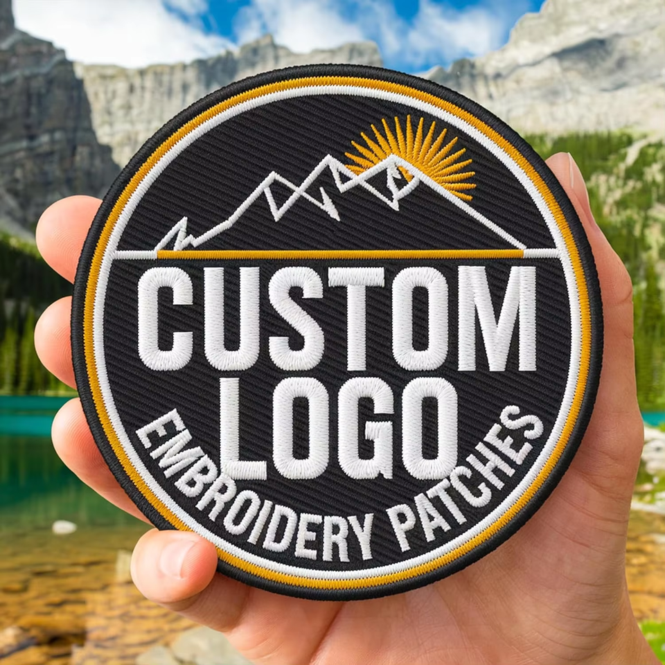 Badge brodé de forme irrégulière, style extérieur, avec logo lettre contrastant, personnalisable, thermocollant, à fixation auto-agrippante